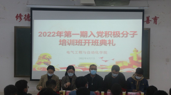 为大力发扬红色传统,传承红色基因,帮助入党积极分子进一步掌握党的知识,端正入党动机,电气学院于2022年4月7日下午在教一楼A404举行了2022年第一期入党积极分子培训班开班典礼。本次开班典礼由电气学院学生第一党支部书记魏帆老师主持,电气学院党总支书记杜志勇老师、电气学院各学生党支部书记和100余名培训班学员出席了开班仪式。