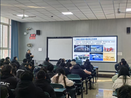 赵良玉教授是飞行器总体设计、导航制导与控制领域的知名专家,学术履历深厚,科研成果丰硕。他先后于北京理工大学获学士、博士学位,曾赴英国剑桥大学、韩国汉阳大学访问学习与工作,长期深耕相关领域科研教学,主持国家自然科学基金、基础加强领域基金等国家级项目10余项,发表学术论文80余篇,出版专著1部、译著4部,授权国家发明专利20项,斩获国防科技进步奖一等奖2项、河南省科技进步奖二等奖1项等多项重要荣誉。讲座中,赵教授围绕野战火箭武器的发展历程、技术现状与未来趋势展开系统阐述,重点剖析了制导控制技术的核心原理、关键技术瓶颈及工程化应用路径。他结合自身主持的国家级科研项目实践,用详实的数据、生动的案例将复杂的学术理论与工程实际深度结合,清晰呈现了在系统集成与仿真、精准制导控制等方面的前沿突破,让在场师生对野战火箭武器领域的技术体系有了全面且深刻的认知。互动环节中,师生们踊跃提问,就武器抗干扰技术、新型制导算法研发、科研项目申报等问题与赵教授深入交流,赵教授耐心细致地逐一解答,现场学术探讨氛围热烈浓厚。