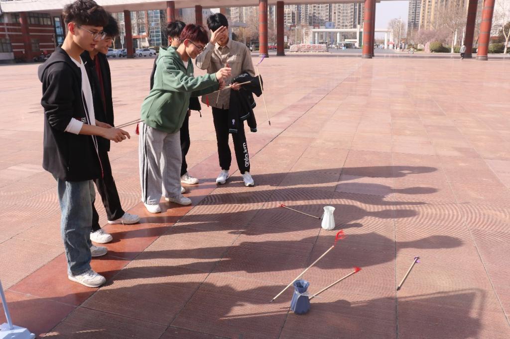 游园会现场,各色游戏吸引了众多学生积极参与,不少游戏区域都排起了长队。历史悠久的“竹竿舞”游戏依然大受参与者青睐,面对有节奏开合摆动的竹竿,每一次成功的跨越都伴随着欢呼声;“投壶游戏”中,大家共同讨论投掷技巧,相互鼓励,展现出团结的氛围;精彩刺激的“定车挑战”使大家努力地保持平衡,虽然失败过很多次,但成功的那一刻,胜利的喜悦溢于言表;“快速滚环”游戏中,大家一遍遍地练习,一次又一次尝试,场上一片火热的气氛;“你投我接”游戏,挑战者配合默契,场面热闹而有序。
