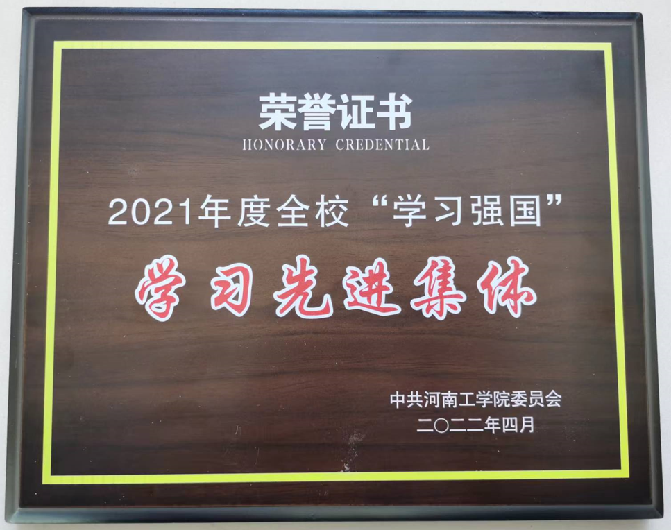 近日,校党委宣传部下发了《关于表彰2021年度“学习强国”学习平台推广使用工作先进单位、先进个人的决定》,我院党总支荣获“学习先进单位”荣誉称号,陈慧波老师荣获“学习先进个人”荣誉称号。