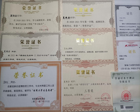 夏艳会,电气学院20级电气自动化技术自202班学生,曾获2020-2021学年国家励志奖学金,2020-2021学年校一等奖学金,2020-2021学年校二等奖学金,2020-2021学年校学习标兵。