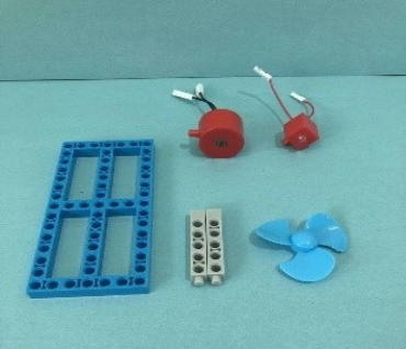 首先我们要准备,底板、电机、发光二极管、立杆、小风叶。准备工作做好了,让我们开始吧!