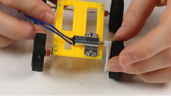 4.把四个车轮依次安装到铁轴的四个端;